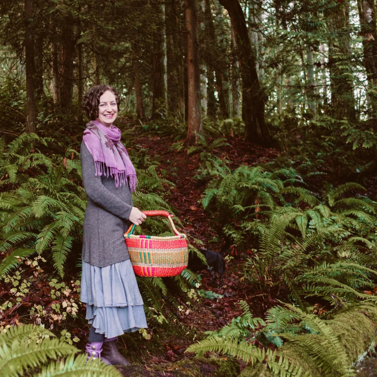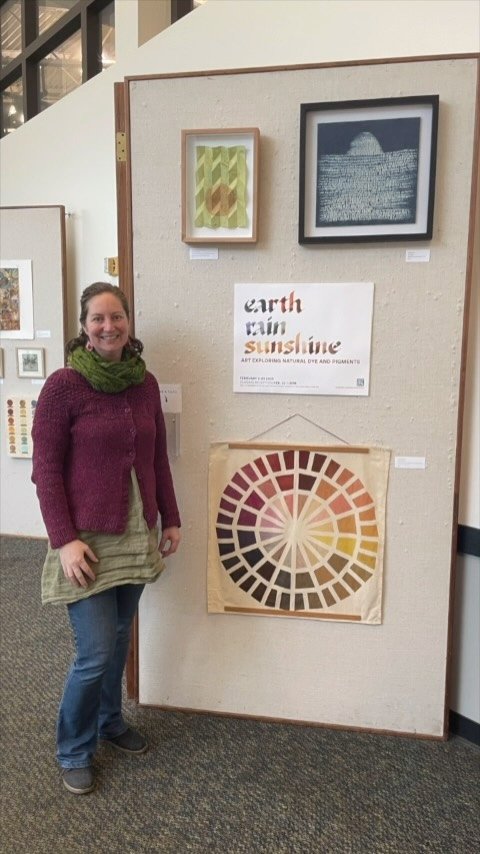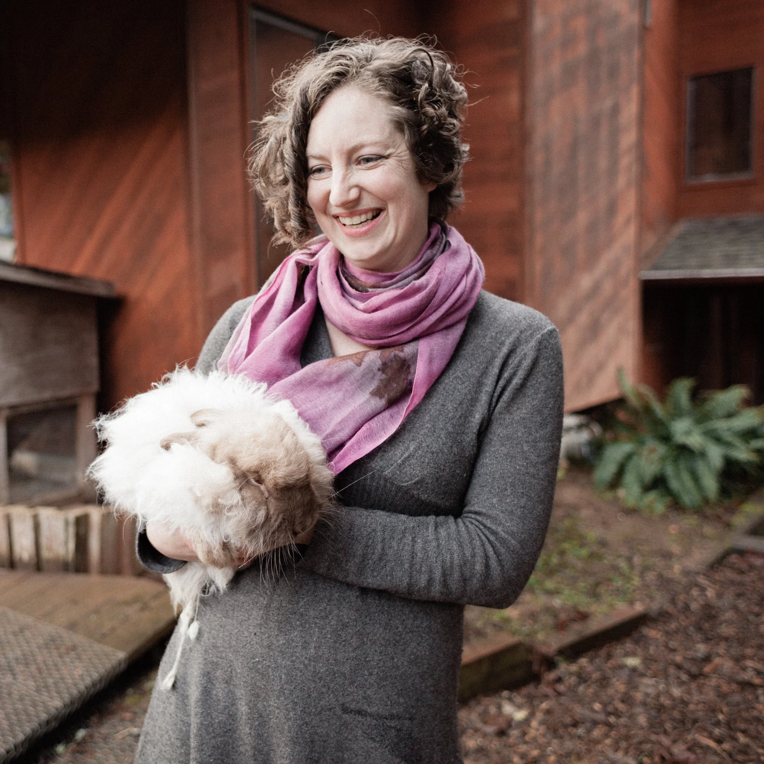 My work is centered around northwest native plants and I draw inspiration from living and working at Cedar Dell Forest Farm, an educational property on the edge of Gresham, Oregon. Leaves, lichen, and mushrooms are sustainably gathered from the forest for use as dyes and I grow many other dye plants in the garden, including indigo! At Cedar Dell, when I’m not creating art and teaching botanical printing and natural dye workshops, you can find me teaching environmental education programs to children and families. I live at Cedar Dell with my family, pets, and numerous farm animals, including a “spinner’s flock” of Shetland sheep and the sweetest French angora rabbit you could ever meet.