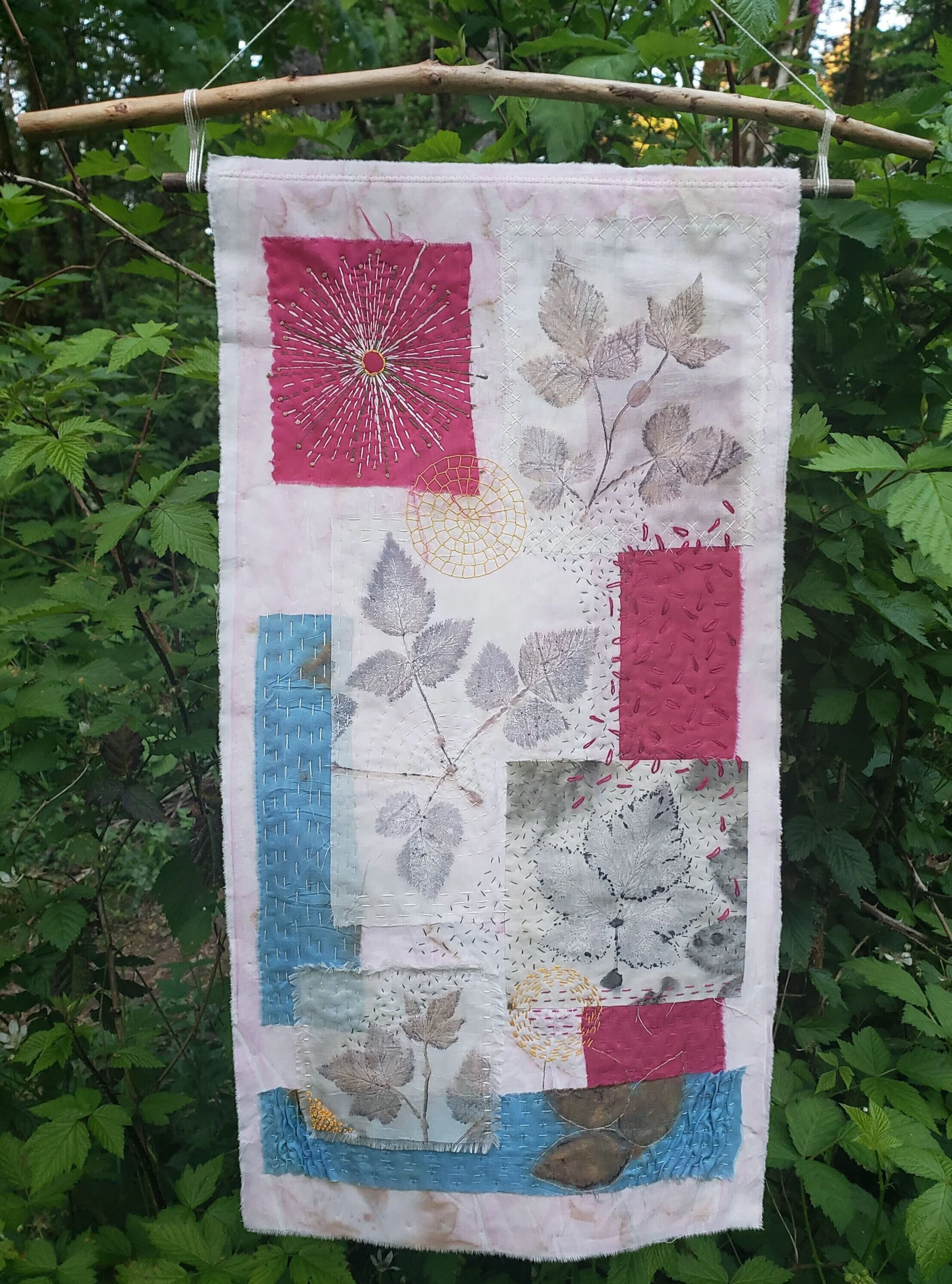 Salmonberry Ecoprint Textile Art - Cedar Dell Forest Series #1