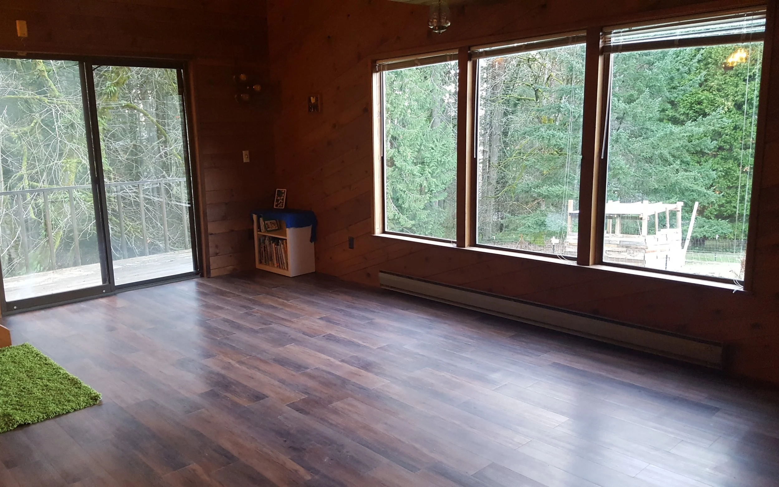 The Nature Classroom is almost 500 square feet with beautiful big windows that look out into the forest.