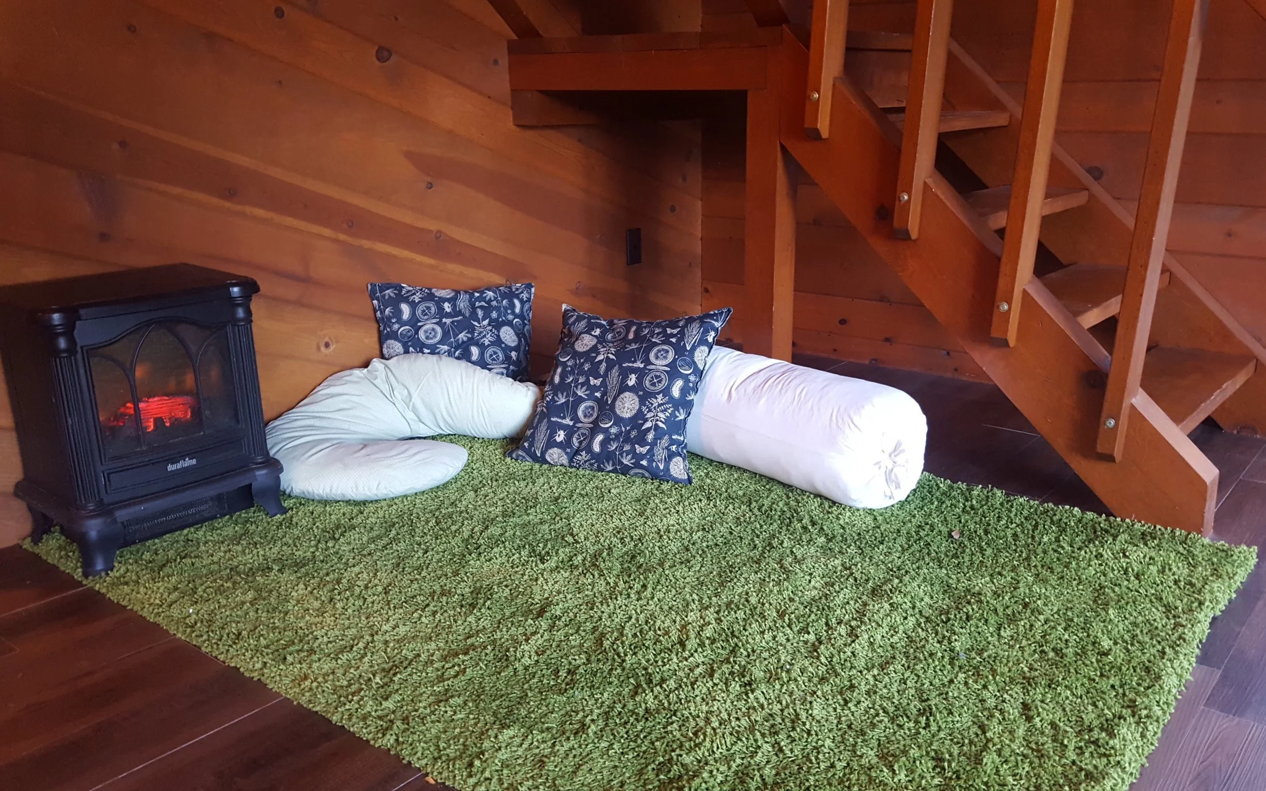 We have a cozy corner set up next to the cubby under the stairs. The electric fireplace adds additional warmth to the space and is safe for little ones to get close to. It's a great place for storytime!