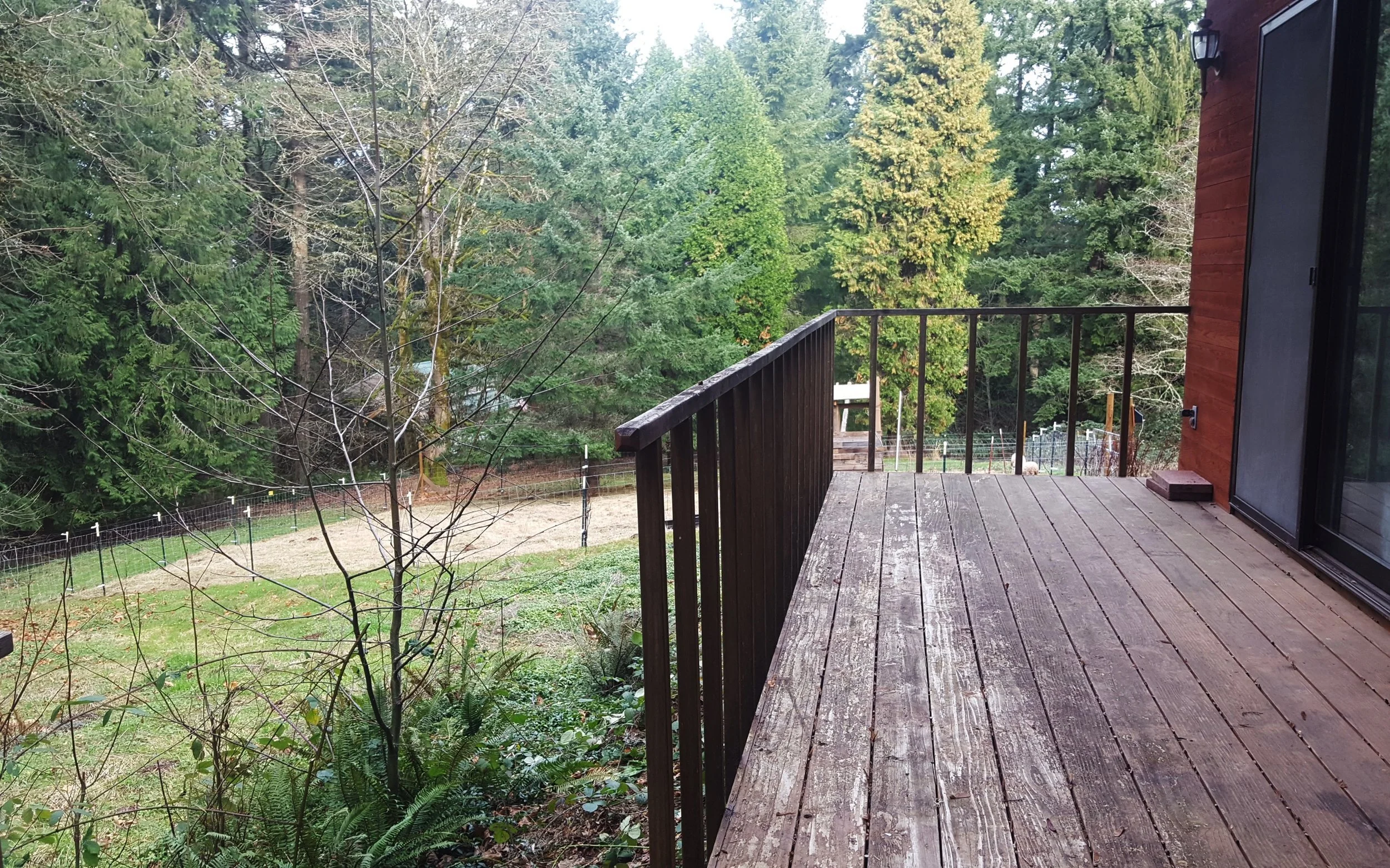 The view from the deck stretches out over 75 acres of public, forested land. It's home to deer, coyotes, frogs, snakes, woodpeckers, owls, just to name a few critters! It provides ample space for exploring and beautiful views to accompany our indoor activities.